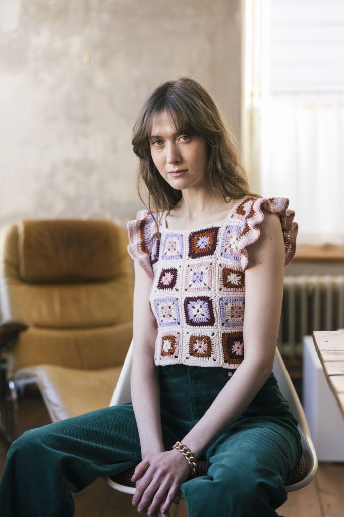Топ из бабушкиных квадратов с оборками Aurinkokuningatar