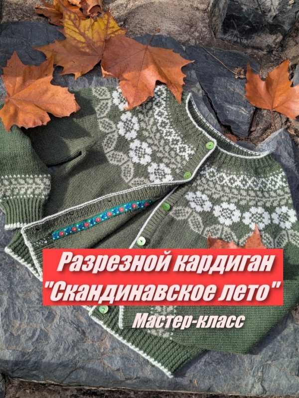 Подробное описание вязания в 3 частях на русском языке в формате PDF + бессрочный доступ к закрытой группе во ВКонтакте (Telegram), в которой проходит совместное вязание разрезного жаккардового кардигана в скандинавском стиле.